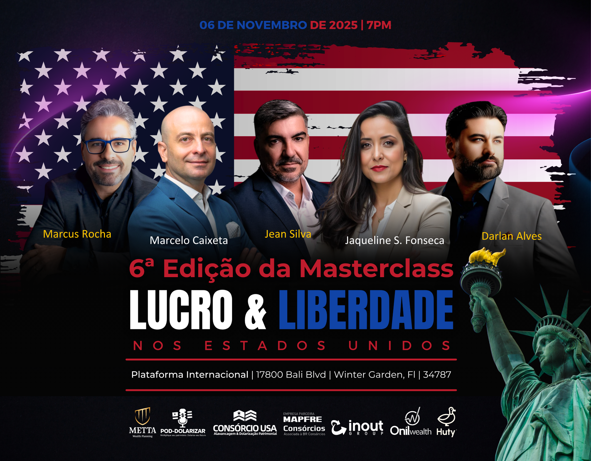 Na 6ª Edição da Masterclass Lucro & Liberdade, cinco especialistas se unem para revelar estratégias avançadas de blindagem, dolarização e liberdade financeira global: